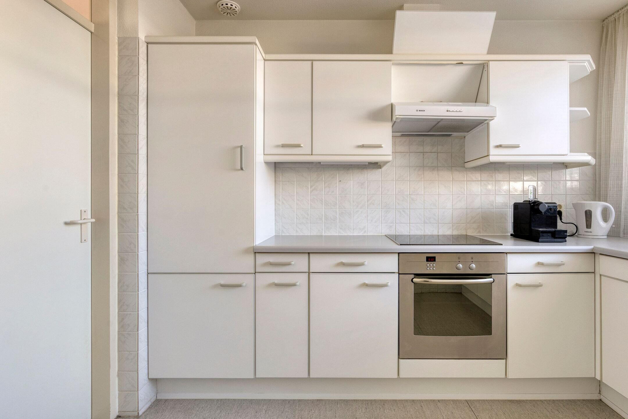 Aan de voorzijde bevindt zich de lichte keuken, compleet uitgevoerd met moderne inbouwapparatuur, waar u met uitzicht naar buiten in alle rust kunt koken. De aangrenzende bijkeuken biedt extra praktische ruimte en een directe toegang naar buiten.