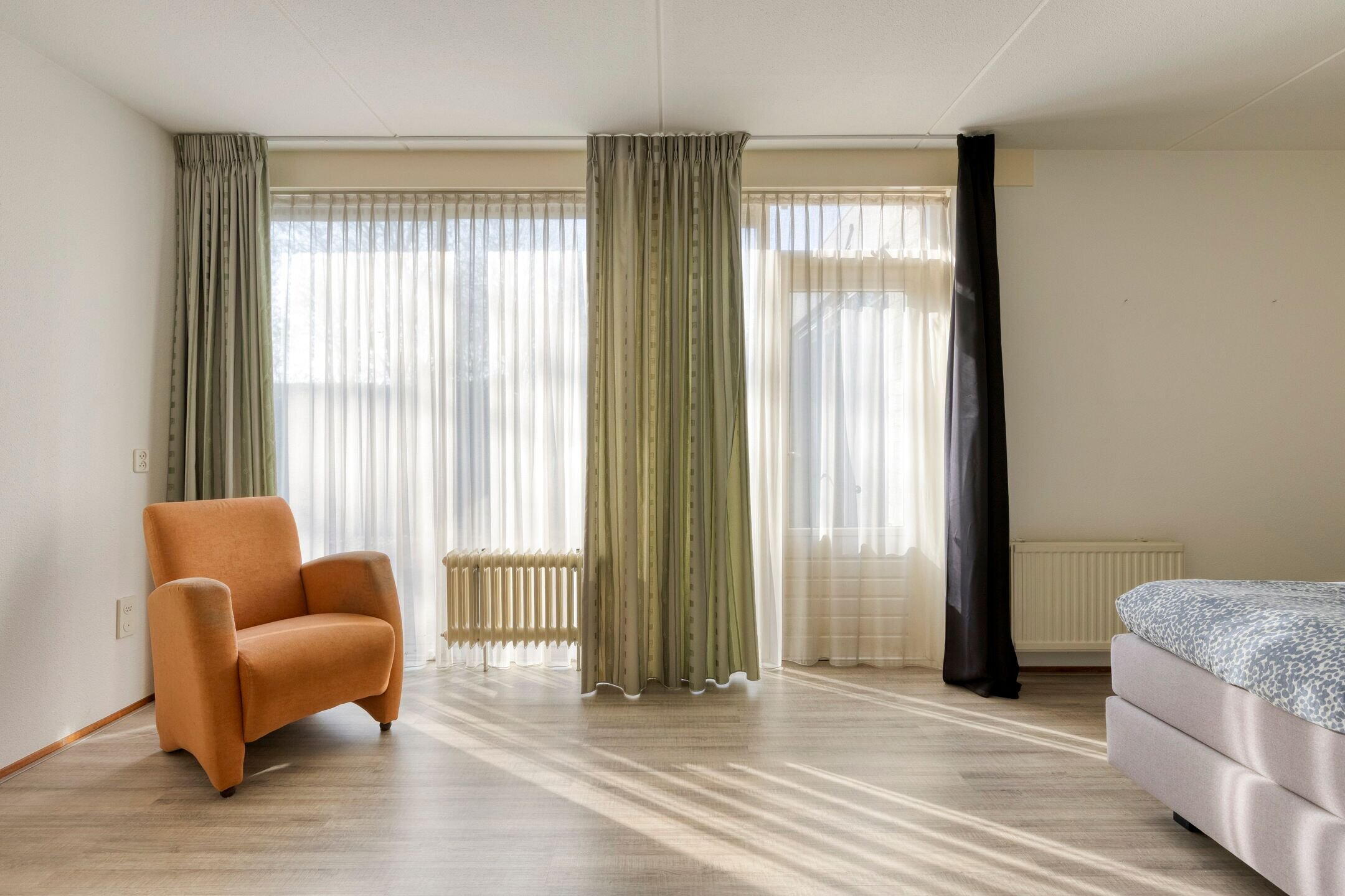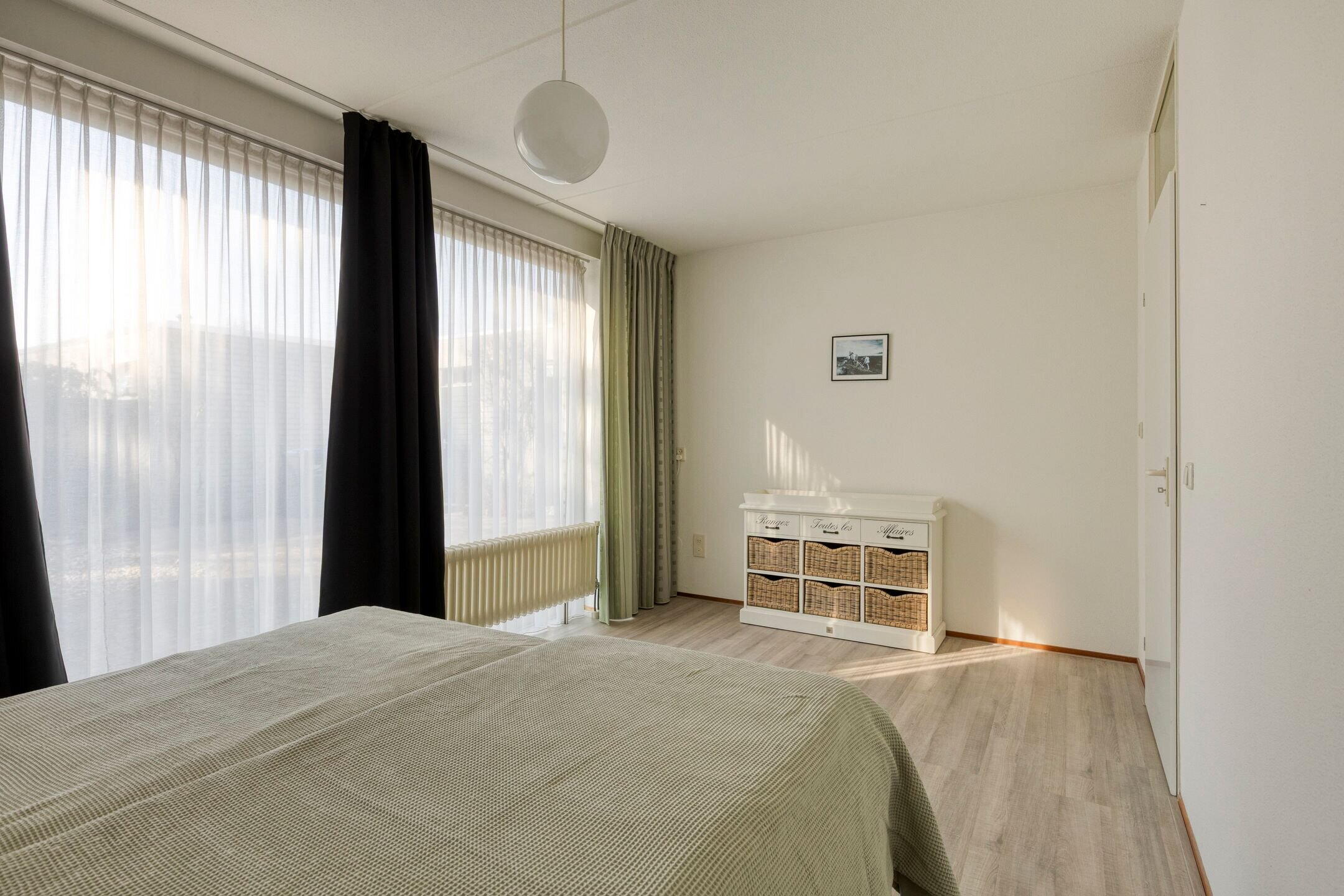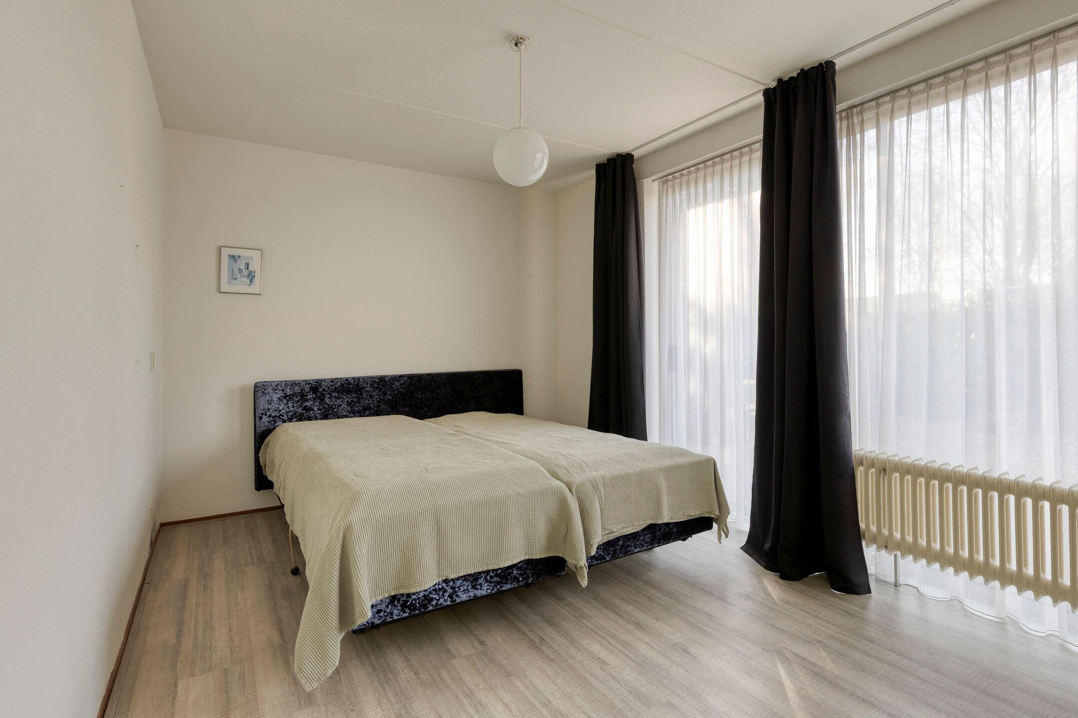 De tweede slaapkamer is eveneens royaal en beschikt over een schuifpui naar de tuin – ideaal als logeerkamer, hobbyruimte of comfortabele werkplek aan huis.