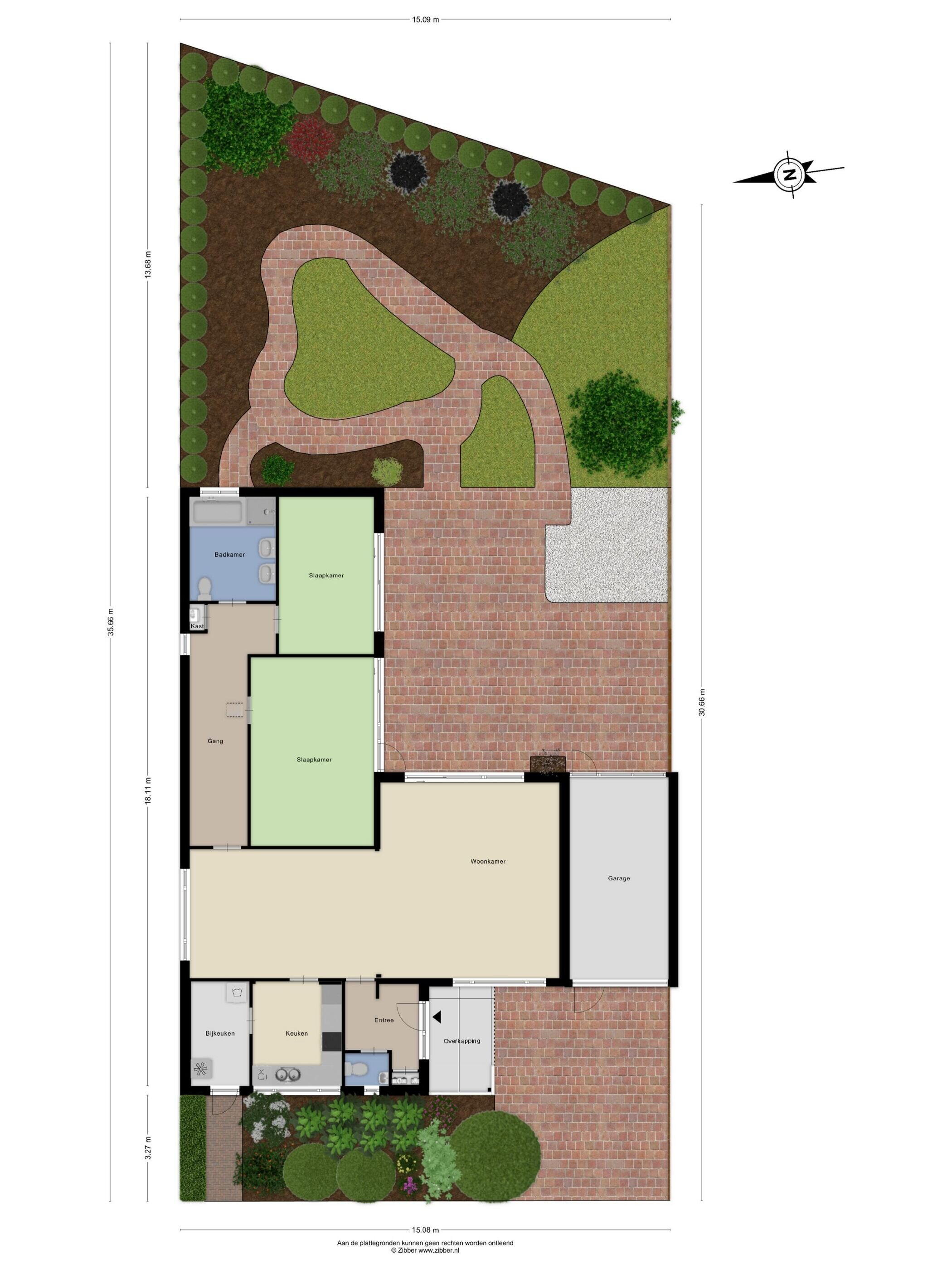 Aan de voorzijde beschikt de woning over een verzorgde tuin en een ruime oprit met parkeergelegenheid voor twee auto’s.